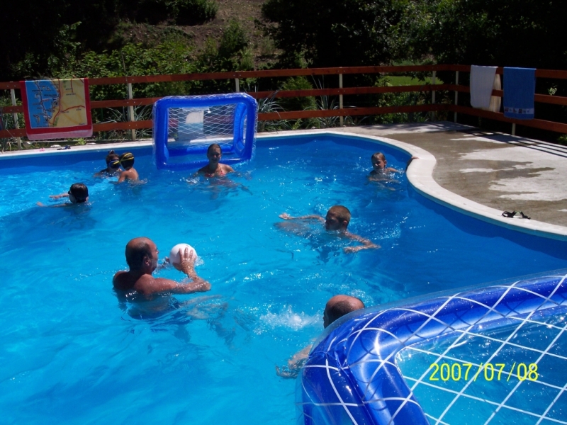 Medencénk vize 30 fokra fűtött és UV technológiával tisztított.